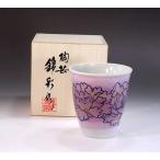 青磁釉裏紅金彩牡丹絵焼酎カップ|有田焼 陶芸家 藤井錦彩作