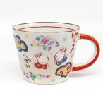 美濃焼 花花 朱 マグカップ 花柄 朱色 赤 陶器 和食器 焼き物 日本製 かわいい おしゃれ