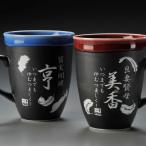 名入れ ギフト SXX ペアマグカップセット 有田焼 開運 赤富士 松竹梅鶴 マグカップ 赤 黒 2点 木箱入り