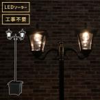 ソーラースタンドライト プランター付き 2灯 LEDライト ガーデンライト ソーラー充電 照明 外灯 門灯 防塵 防水 屋外 ガーデン 玄関 防犯 代引不可