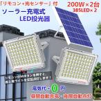 最新警告機能付!200W相当「2台セット400W相当」 ソーラー高輝度LED投光器 「光センサー、リモコン付き」調光・電量表示可ー駐車場 庭災害 停電など最適!