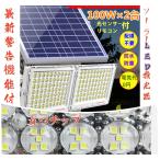 最新警告機能付!300W相当「2台セット600W相当」 ソーラー高輝度LED投光器 「光センサー、リモコン付き」調光・電量表示可ー駐車場 庭 災害 停電などに最適!