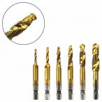 ドリルビット 6本 セット チタン コート ドリルタップ 六角軸 穴あけ ドリル タップ 面取り スパイラル ねじ切り 下穴 HSS