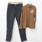 パーリーゲイツ ジャックバニー シャツ パンツ 2枚セット ハイネック 長袖 ボーダー プリント ストレート 中綿 茶 オレンジ 紺 150