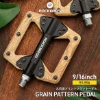 自転車 ペダル フラット 木目調 ウッドデザイン 9/16インチ ネジ径 14.3mm 幅広 軽量 強化ナイロン ロックブロス