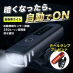 自転車ライト 充電式 自動点灯 led 防水 後付け 自転車 ライト ヘッドライト テールライト 前後セット テールランプ付 明暗センサー