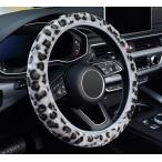【並行輸入品】ZHOL ヒョウ柄ハンドルカバー ユニバーサル 15インチ 伸縮性 プラッシュ ソフト ふわふわ ハンドルカバー レディース ガー
