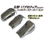 日野 新型 17 プロフィア H29.5〜 メッキ ミラー ステーカバー 電動リモコンミラー 用 下部 貼付 被せタイプ 左右 3点 セット デコトラ