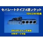 ON/OFFスイッチ機能付きセパレートタイプ4連ソケット USBポート付き 12V/24V共用