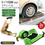 積載車用 タイヤ固縛 対応 ラッシングベルト 中間金具付き ラチェット ベルト セット 2組セット 車両固定 ベルト幅 50mm 2.5m グリーン 送料無料