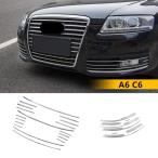 車フロントバンパーグリル装飾カバーフォグランプトリムアウディ A6 C6 2009-11 ステンレス鋼フロント曇ランプストリップ