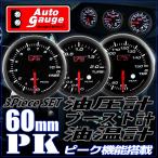 オートゲージ ブースト計 油温計 油圧計 60Φ 3連メーター PK 3点セット スイス製モーター スモークレンズ ピーク ワーニング 60mm PK60AUTOC3SET