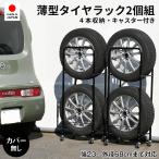 軽自動車用 薄型タイヤラック2個組 タイヤ幅18cm用 専用カバー付き | 日本製 タイヤ収納 縦置き 外径60cmまで対応 冬タイヤ 0823 爆買
