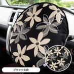 軽自動車・普通車(コンパクトカー)用ハンドル遮熱カバー ハンドルサンシェード 日よけ 暑さ対策 かわいい おしゃれ 日本製/ブラック北欧花柄