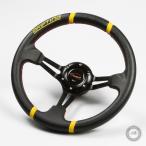ステアリング 32φ ディープコーン 70mm パンチング加工PVC 赤色クロスステッチ イエロートップD32P