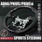 トヨタ アクア 30プリウス プリウスα スポーツステアリング ガングリップ 黒木目×パンチングレザー _55052