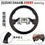 エブリィワゴン DA64系 ステアリング 黒木目 ベージュレザーコンビ ガングリップ ウッド パーツ 内装 ドレスアップ アクセサリー _55013