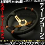 ステアリング ディープコーン momo ボス対応 汎用 本革 直径 約345mm 赤ライン×黒ステッチ ハンドル 汎用 パーツ _55061