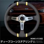 ステアリング ディープコーン momo ボス対応 14インチ ハンドル 汎用 バックスキン レザー 直径 約345mm イエローライン あすつく対応 【送料無料】