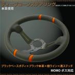 ステアリング ディープコーン momo ボス対応 汎用 本革 オレンジライン×黒ステッチ 14インチ ハンドル 【送料無料】
