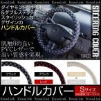 ハンドルカバー Sサイズ 直径36cm〜37cm 汎用 PVCレザー ステッチ柄 選べる3タイプ 軽自動車からミニバン普通車まで ステアリングカバー @a421
