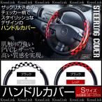 ハンドルカバー Sサイズ 直径36cm〜37cm 汎用 PVCレザー チェック柄 選べる2タイプ 軽自動車からミニバン普通車まで ステアリングカバー @a422