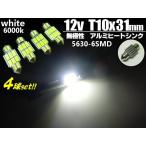 お買い得 4球セット 12V T10×31mm LED 白 ホワイト 無極性 6000k 5630 6SMD ヒューズ型 バルブ ラゲッジ ナンバー灯 ルーム球