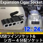 シガーソケット電源分配器 12V24V シガー4+USB2 ターン台付 4008