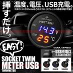 ソケット ツイン メーター シガー USB 充電 多機能 デジタル 温度計 ライトアップ