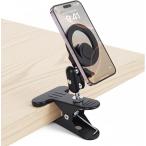 スマホスタンド クリップ式 マグネットスマホホルダー MagSafe対応 多機能 マグセーフ 三関節360°自由調整 卓上用 (ブラック)