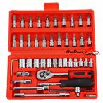 46pc 1/4 "(6.35mm) ソケット ラチェットレンチツールセット 自転車バイク 整備 メンテナンス ODGK-T067