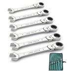 フレックスラチェットレンチ 6本組 首振りラチェット 両用ヘッド スパナ レンチ コンビネーションレンチ 収納袋付き 角度調整可能 72ギア 車メンテナンス 自動車