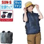 空調風神服 ベスト サイドファン (12Vフルセット フラットファン) サンエス KF92442 通気性 消臭 ファン付き作業服