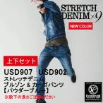 送料無料(但し北海道・沖縄を除く)上下セット イーブンリバー 作業服 ストレッチデニムブルゾン USD907P カーゴパンツX9 USD902 新色 パウダーブルー