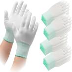 背抜き手袋 作業用 静電気防止手袋 12組 24枚 薄手 白手袋 軽作業 指先PU加工(グリーン, M)