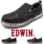EDWIN 安全靴 スリッポン 紐なし スニーカー 鉄先芯 作業靴 3E 耐滑 防滑 軽量 衝撃吸収ソール デニム生地 着色加工底 おしゃれ エドウィン esm108d|正規販売店