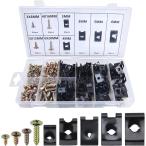 U型クリップ Uタイプクリップ Uクリップとネジのアソートキット カーUクリップ Uネジ (ブラック & イエロー, 340個セット)