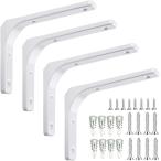 棚受け金具 白 L字金具長さ:25cm 厚さ3.5mm軽量タイプ 高耐荷重 目立たない棚受け 4個セット ホワイト