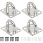 アイプレート 天井 フック パッドアイ U型 ステンレス 壁 ネジ アンカー付き 4個セット (シルバー)