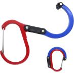 Mサイズ 多機能カラビナ型フック 荷重 22kg 1個入 アウトドア (ブルー・レッド, 高さ7.6cm 幅6.1cm (折りたたみ時)