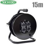 日動 コードリール 15m 屋外用 電工ドラム 延長コード 100V ドラムコード 電源 コンセント コンパクト 小型 おしゃれ 黒 ブラック