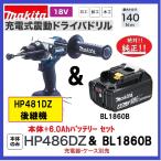 マキタ 18V 充電式震動ドライバドリル HP486DZ + BL1860B 本体+6.0Ahバッテリー HP481DZ 後継機