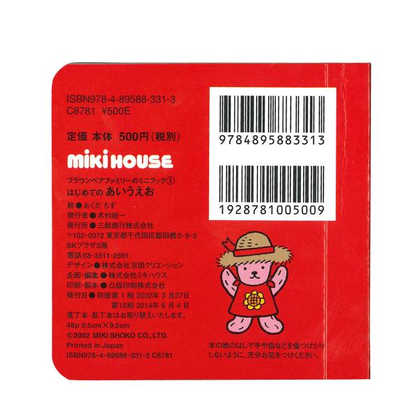 ミキハウス 出産祝い 内祝い 【ブラウンベアファミリーのミニブック】(1)はじめてのあいうえお 色なし --- MIKIHOUSE