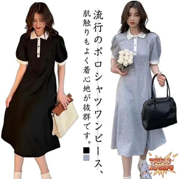 ポロワンピ 春夏 ワンピース レディース シャツワンピース フレアシルエット ミモレ丈 大人 ポロワンピース ポロシャツ ワンピース 大きいサ