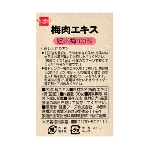 梅肉エキス 90g 健康フーズ 梅エキス 紀州梅 100% 無添加 クエン酸 国産 梅 ウメ エキス 和歌山県産 美容 健康 活力 疲労 疲れ 夏バテ 元気 新品 送料無料