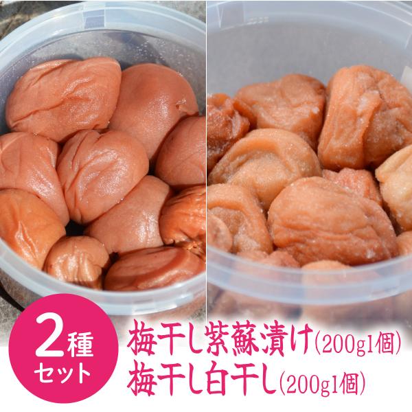 送料無料 やわらかい食感のすっぱい梅干し 伏見梅園の完熟梅 梅干し 紫蘇漬け200g×1個 白干し200g×1個 合計400g
