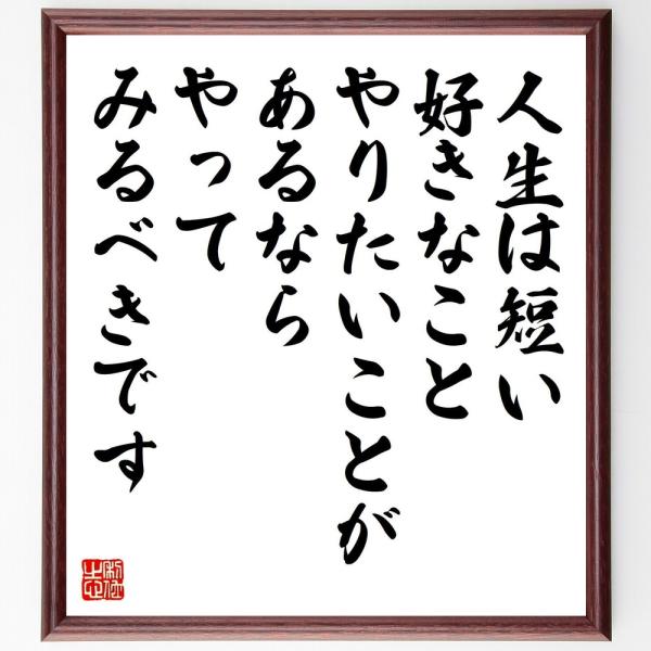 名言「人生は短い、好きなこと、やりたいことがあるなら、やってみるべきです」手書き書道色紙額/受注後の毛筆直筆
