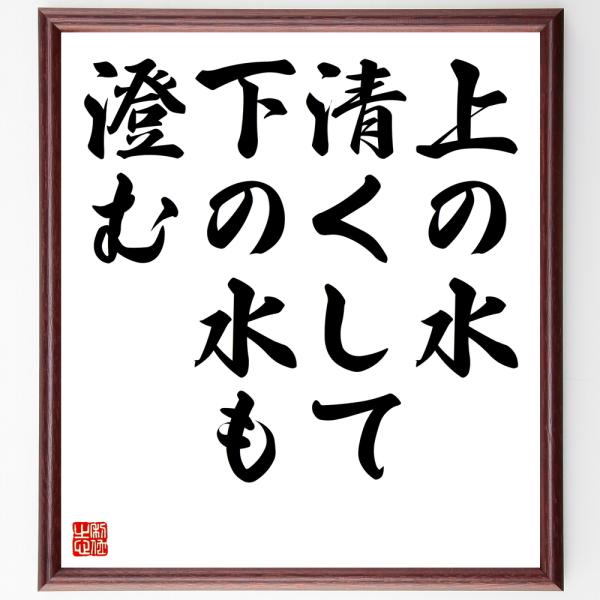 名言「上の水清くして、下の水も澄む」手書き書道色紙額/受注後の毛筆直筆