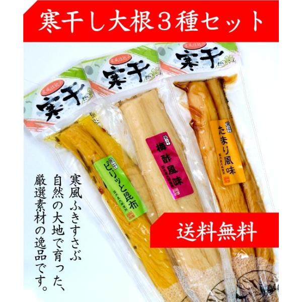 国産 たくあん 寒干大根漬け 沢庵 3種セット ( たまり風味 梅酢風味 ピリッと昆布 ) TM お試し ご飯のお供 メール便 送料無料