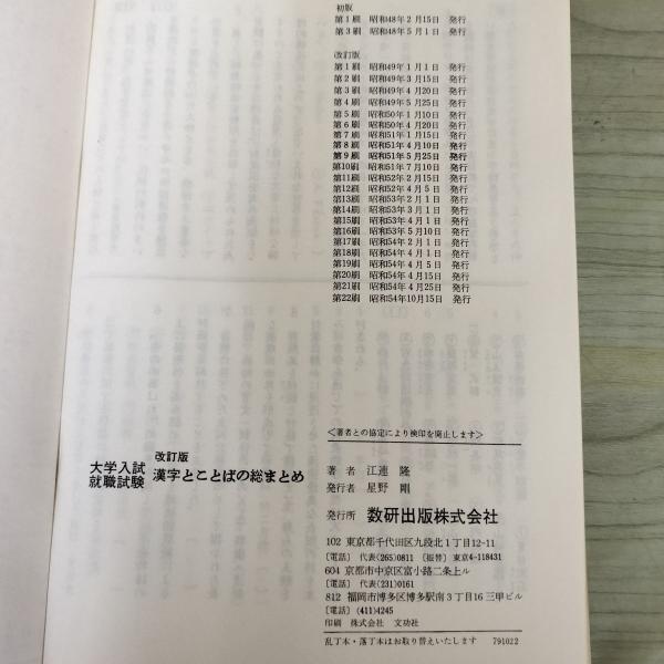 [中古] 大学入試 就職試験 漢字とことばの総まとめ 数研出版 改訂版 江連隆 弘前大学助教授 解答編付き 書き込み多数あり 190158